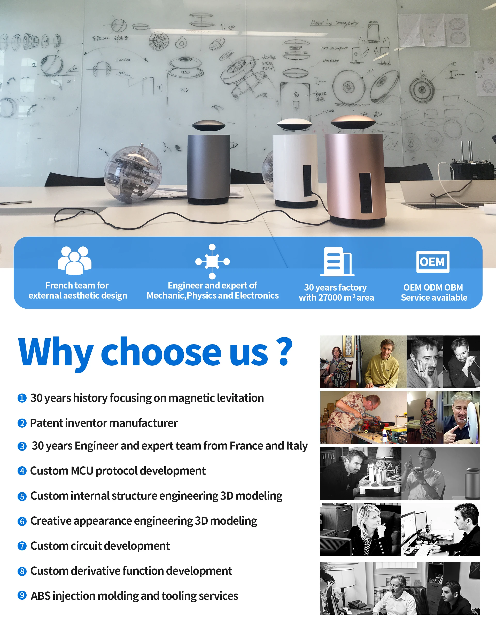 Principaux produits : Lampe de lune flottante, haut-parleur Bluetooth en lévitation, bonsaï flottant, présentoir, globe flottant